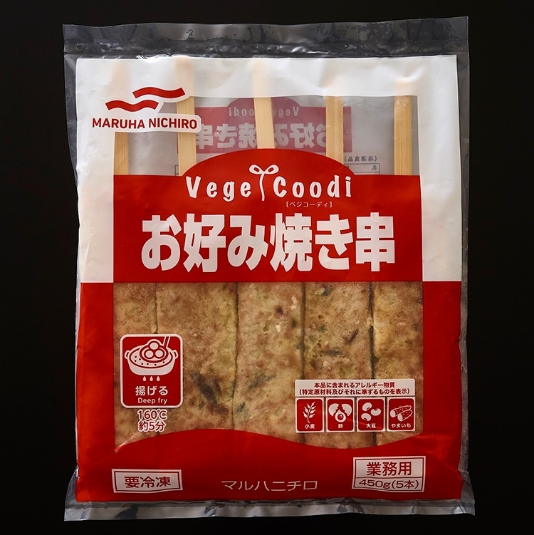 みんな大好きなお好み焼きを食べやすく串に刺しました。串物フェアに最適です。